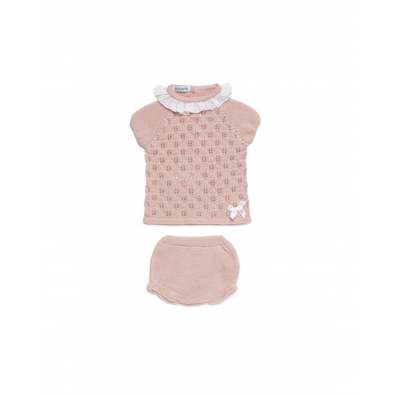 Conjunto braga punto lin rombos Ciruela